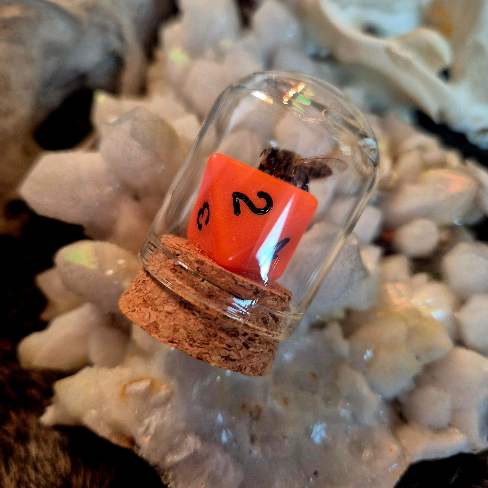 - containing d&d dice and worker bee